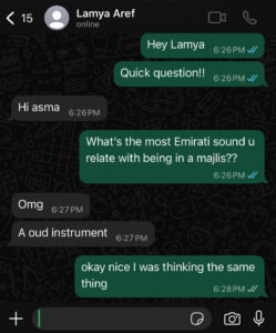 For the sound design, I wanted it to feel authentic and true to the spirit of the majlis. After struggling to find the right audio online, I decided to ask a few local friends for inspiration. Their suggestions helped me discover tracks that carried the warmth and cultural depth I was aiming for, which made the game atmosphere feel much more genuine. I decided to stick to the classic tradition of the oud instrument as that is what both my friends and I associate with the majlis setting .