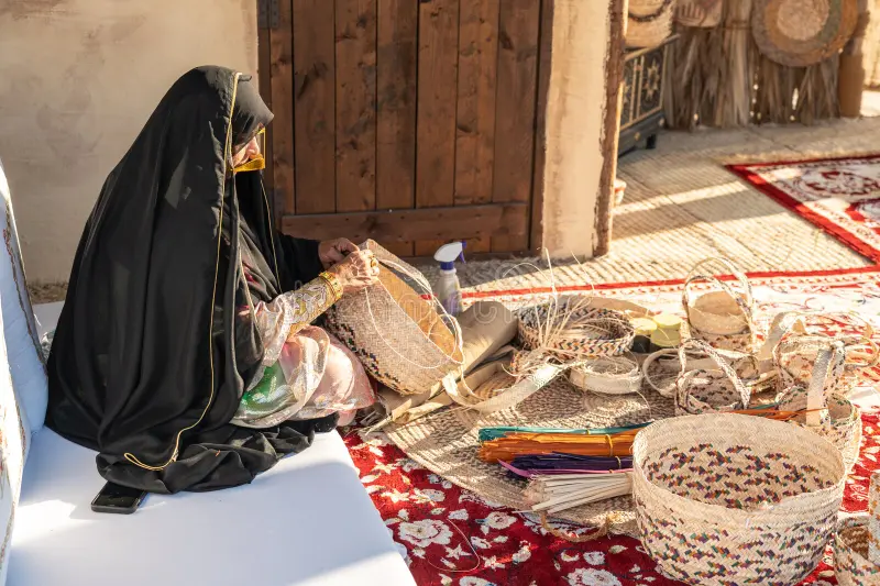 For the background of the game, I was inspired by the traditional majlis setting, with its patterned carpets, red cushions, and lanterns that create a warm, communal atmosphere. This space felt like the perfect environment to represent Emirati culture, since the majlis is where people come together to share food, stories, and hospitality. For the basket element, I drew inspiration from traditional Emirati handwoven baskets, like the ones I saw being crafted by Emirati women around the UAE. These baskets symbolize both craftsmanship and cultural continuity, and including them in the game was my way of honoring the artistry and traditions passed down through generations.
