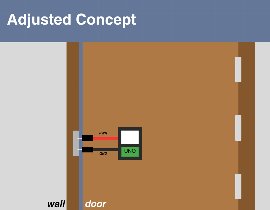 Sometimes I don’t fully close my door properly and don’t know if it’s fully closed. That inspired me to make the door a switch to act like a DIY security system. I have no experience with physical computing so I had some trouble visualizing how it would look in my head, and it didn’t help that I’ve been out sick for so long. This image below was my initial concept for it.