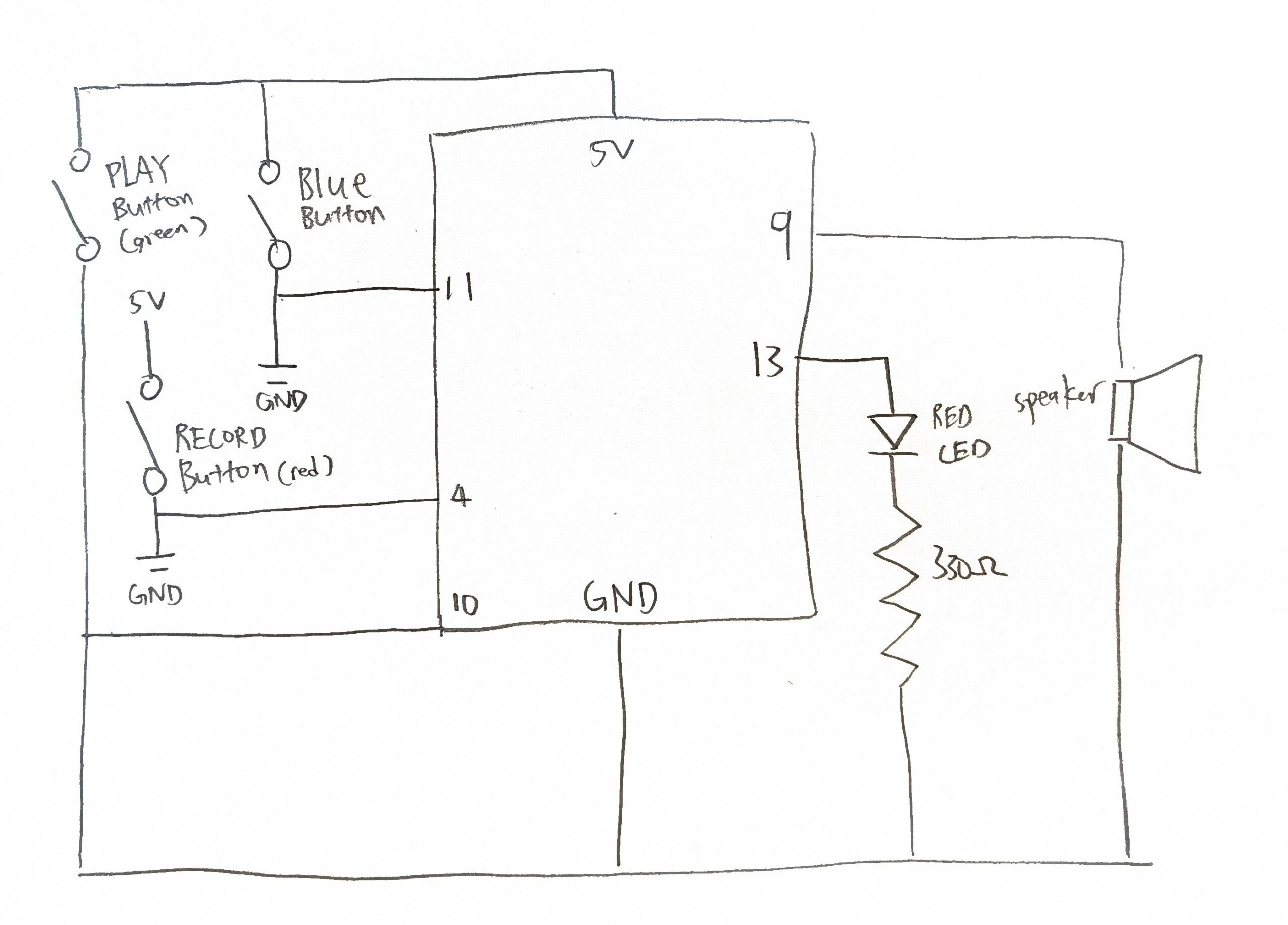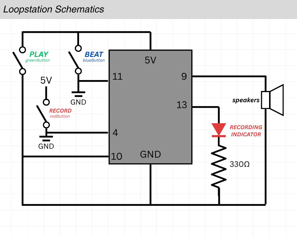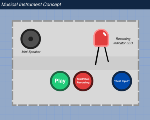 I thought about the capabilities of the arduino speaker and was unimpressed with the sound “texture” of it, so we discussed what we could do with a rather limited range of sounds we could generate. I’m not much of a musician so I suggested what if we made a simple beat recorder, kinda like a metronome of sorts? Yongje informed me that what I was describing is called a “loopstation” and we got to designing.