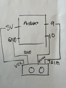 The Arduino codesimply measures how far away your hand is from the sensor and sends that data to the p5.js code. The Arduino code measures distance by sending an ultrasonic pulse and calculating how long it takes to bounce back, then converts that time into cms using the speed of sound (0.034 cm/microsecond) divided by 2 since the sound travels to the object and back.
