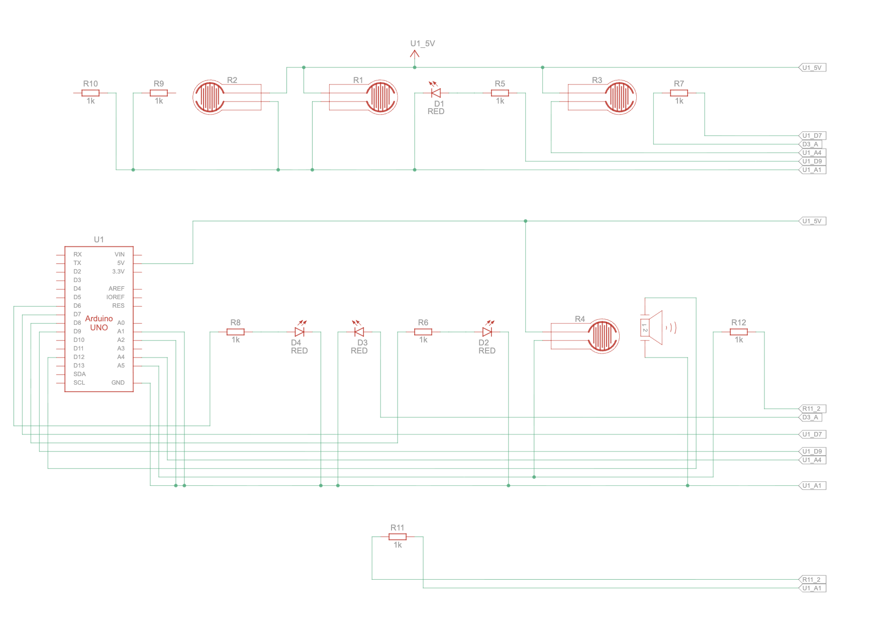 There is multiple levels to the communication between arduino and p5.js, where arduino sends out signals in levels for the speed for each of the force sensors. It signals which force sensor is being pressed and how hard it is being pressed. It also has a toggle switch that controls when the artworks are opened and closed when the user is close to an artwork. There is also a buzzer that plays a note every time a work is opened or closed. Then there are the 4 leds that get signals from p5 on when to turn on, when the works are selected as well.