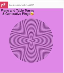 In terms of the code I am particularly proud of the lines for (let r = 10; r <= 280; r +=10) as I felt like I gave my code a specific radius to the width of the generative rings. Also, I like the code text(“&Generative Rings”) just because it was a little gimmick and emoji that I wanna create as an aesthetic to my project. Also I am proud of the code: let g = r+sin(frameCount * 0.05) * 10; because when having sin within the formula this allows the output to blink in and out like a wave and the frame count I set it to be *10 blinking in order to blink in and out faster but not too fast.