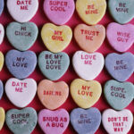 I was inspired by candy hearts (as seen below) during Valentine’s Day, which is coming up soon. I wanted to recreate the soft colors and heart shapes of the candy hearts while adding movement and interactivity. So, my final sketch has hearts float and bounce around the screen, and when you click, it changes colors (but still within the color palette I’ve chosen).
