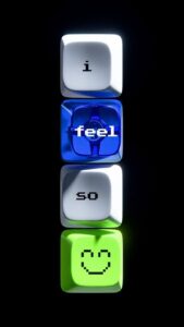 I thought that it would be nice to create something that looks like keyboard but is less predictable (and less functional, apparently). Therefore, I created a small piece where keyboard tiles of random color appear all over the screen and stay for random time between 1 and 4 seconds, and, if being clicked, display a random emoji face from the list I provided.