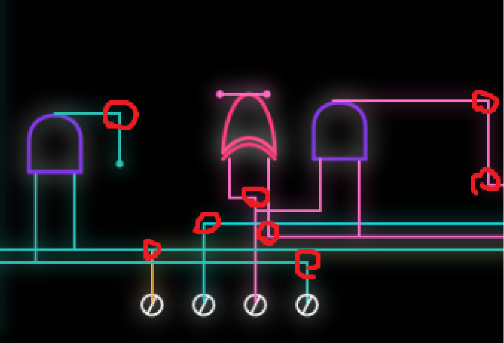 Here we check if a certain time has passed before we start drawing the path of the 3rd bit that goes from the first point to the first and gate. We use our drawpath function to get it drawn with a duration of 1.5 seconds that we specified. And since is the last path to the gate that we are drawing it to, we draw the and gate right after! Repeat this with every single path and gate and we have our sketch done… (Absolutely tedious)