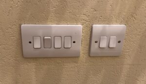 Even after living in this house for around 10 years, I still flick multiple switches until I find the one I need. The placement of the switches is especially inefficient because some of these switches are for lights outside the house in the front yard, and some are for lights inside the house.