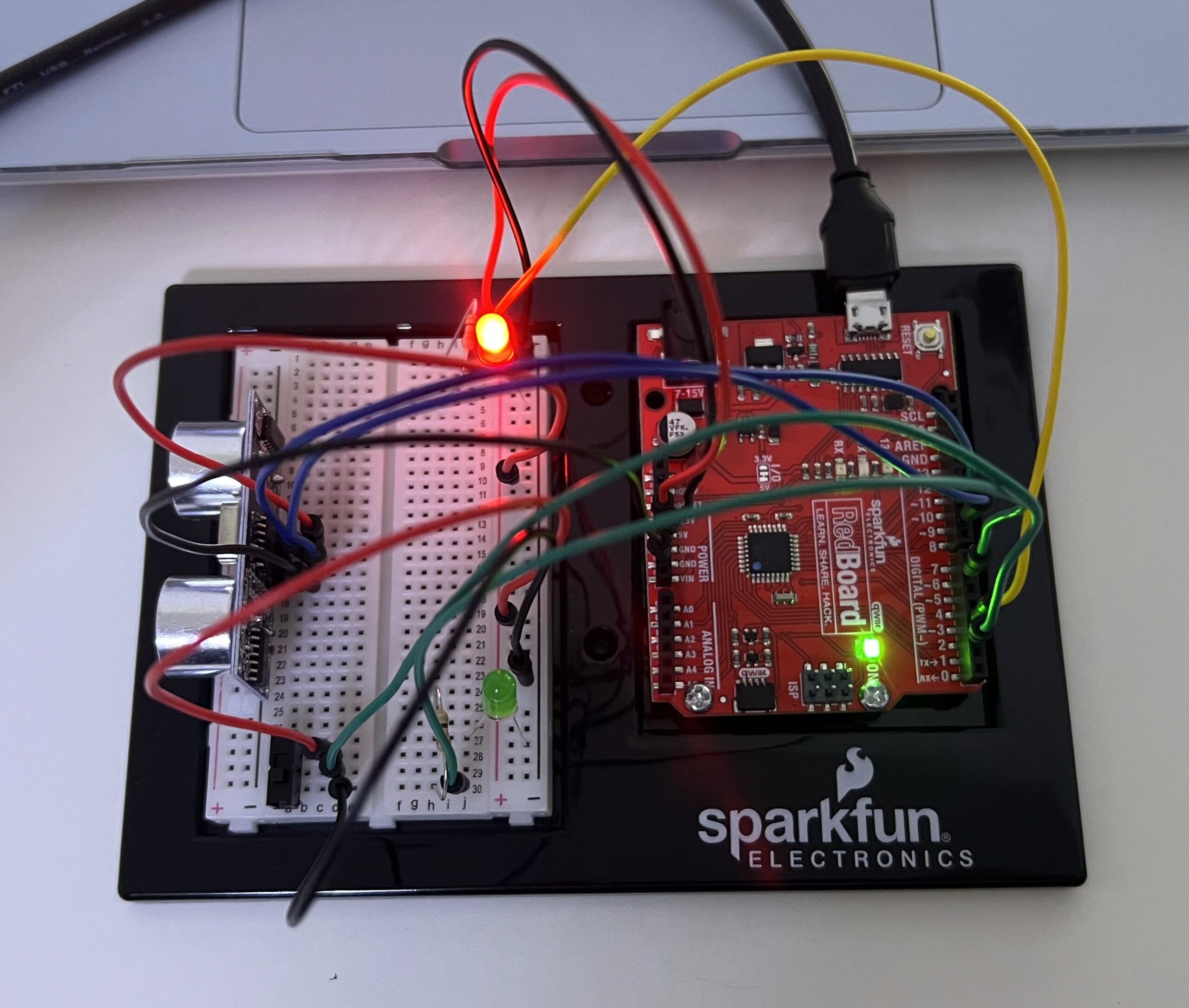 For the future, I would like to expand the project by adding more LEDs of each color and aligning them in a straight line. As an object comes closer to the sensor, more LED’s light up, and the further away it is, the less the LED’s light up. So, it would look like a gradually lighting up strip of light.