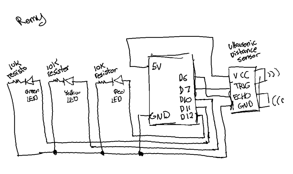 Using three LED lights and an Ultrasonic sensor, I made a little traffic light thing that goes from green to yellow to red the closer you get to it.