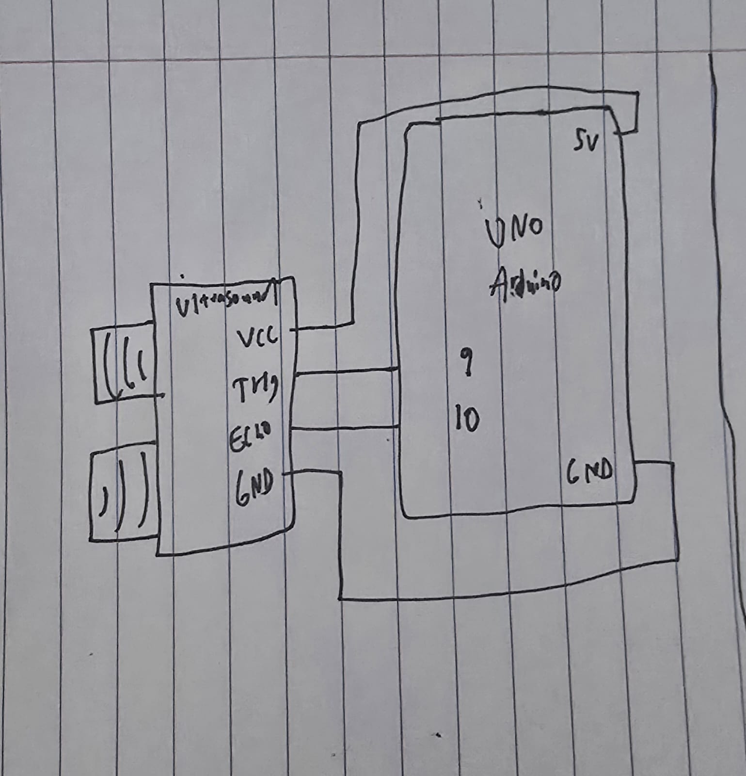 The code for using the sensor is pretty standard, trigger it so often, measure the duration using the formula (speed * time), and then send that to p5js.