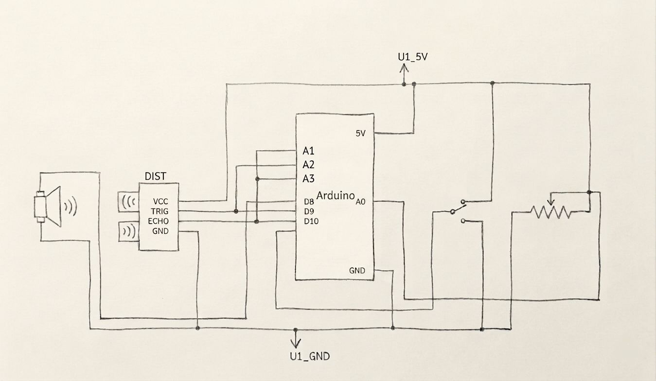 The way it works is that the button turns the system on and off, which the yellow LED shows. When the system is on, the blue LED changes brightness based on the potentiometer. That means the yellow LED works in a digital way, because it is either fully on or fully off, while the blue LED works in an analog way because its brightness changes gradually. In that sense, the project feels like choosing between two lighting options: a basic on and off lamp, and a second lamp that can be adjusted.
