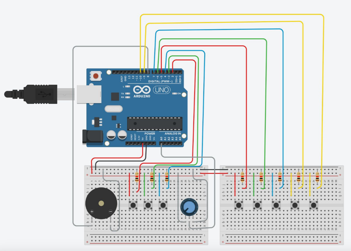 const int buttonPins[] = {2, 3, 4, 5}; // Yellow, green, blue, and red