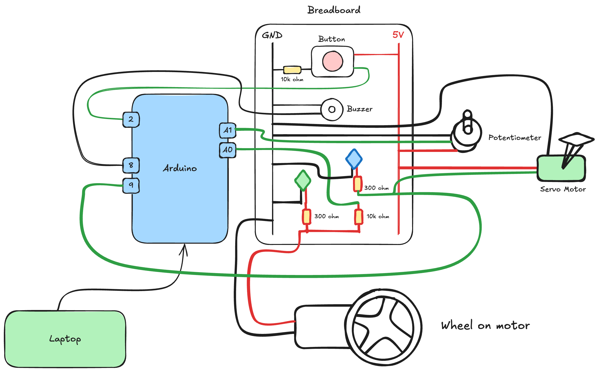 The Arduino controller serves as a physical interface to the digital content, creating a more tangible connection to the stories. The circuit includes: