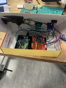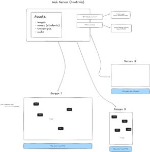 When a user accesses the application, they’re presented with a multimedia canvas that displays images related to a student’s story while playing their audio narrative. As the audio plays, transcribed text appears dynamically on screen, visualizing the spoken words. Users can control the experience either through on-screen interactions or using the physical Arduino controller.