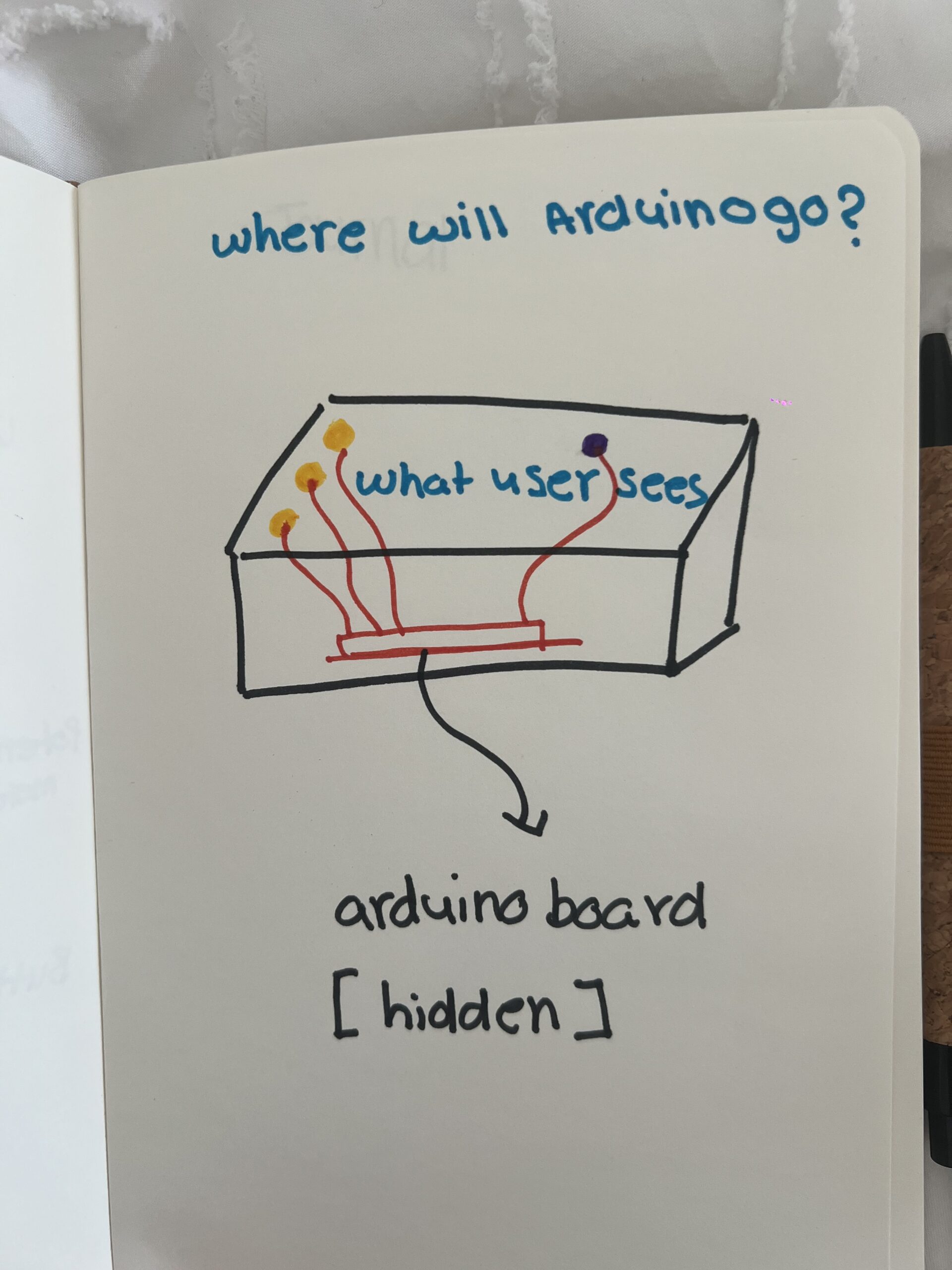 You can’t see any of the wiring I hid everything neatly inside the cardboard housing. The labeling, colors, and layout make the experience very user-friendly. I’m also proud of the fact that people were able to figure it out without me saying anything. When I stepped back and just observed, I realized the design communicated itself very clearly, which was exactly my goal.