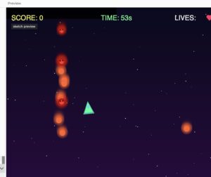 I’m really happy with how this game turned out. The music transition at 10 seconds is probably my favorite part because it genuinely makes the game feel more intense and interesting. The particle effects were also surprisingly easy to implement but it added so much to the feel of the game. The biggest thing I learned was about game balance. It’s one thing to make mechanics work, but making them feel good for the user is way harder. I probably spent as much time tweaking numbers like how fast things fall and etc. as I did writing the actual code.