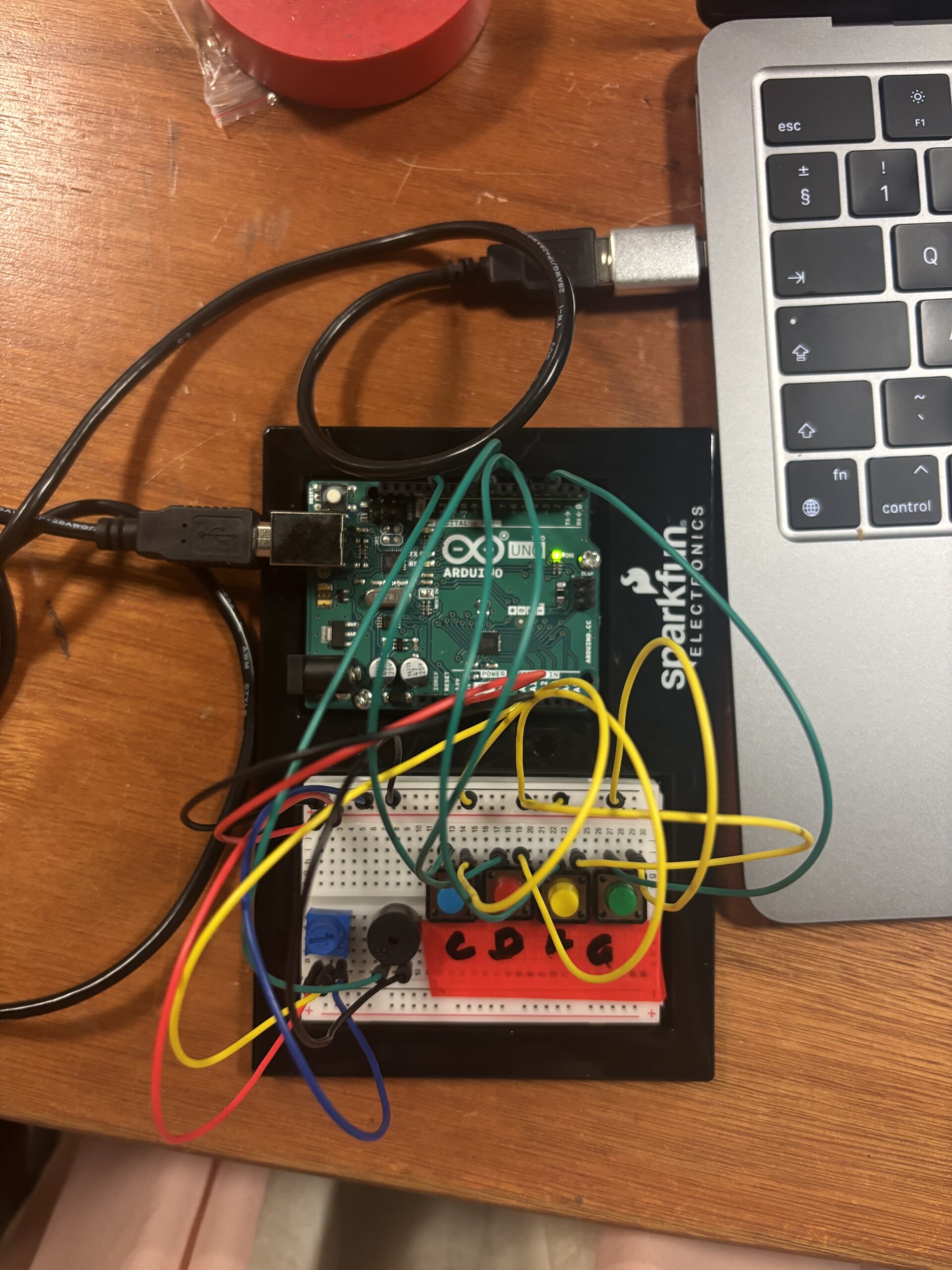 However, in this whirlwind of chaos on the final day I learnt how to stay calm under pressure and focus on solving the problem. I quickly resolved the situation by fabricating a board by recycling my Arduino box and decorating it. While it wasn’t as big or cool as my initial arcade button setup, I managed to focus on the outcome of the project, and have fun making it. It also turned out super cute at the end (bonus)!
