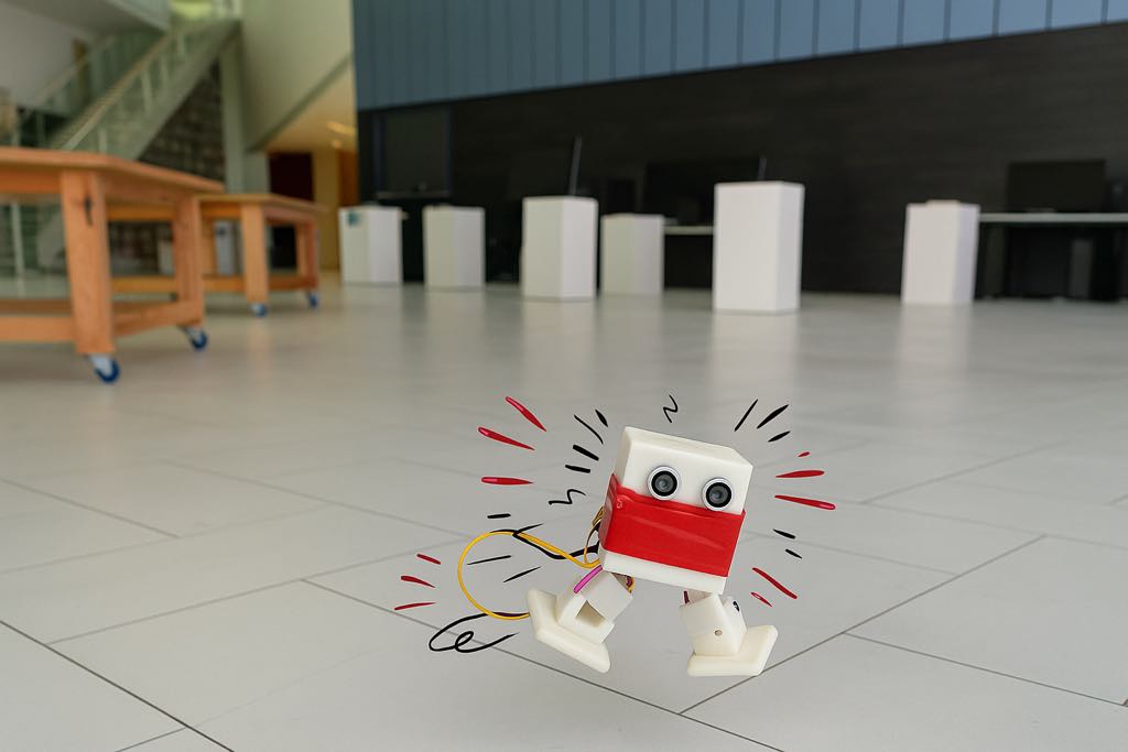 The Storyline was massively tweaked last minute since the servos burnt and due to the lack of same servos available in IM lab, the robot became unstable. “Every bug is an opportunity to learn something new” – yep, I turned it into a real life learning objective. the tagline went- Dont try to blend in to a world you dont belong in, Stay true to yourself.