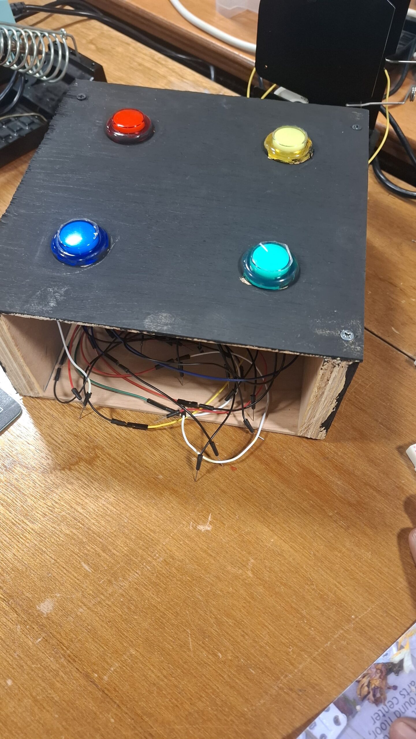 I am really proud about how the game graphics turned out. That is; buttons, score recording and representation, start page, game over page, restart logic, “lives” handling and the game progression loop. On the hardware arduino side, I was proud of the carpentry and design of the wooden platform that held the push-buttons. However, I think there’s still more that could have been done on the aspect of aesthetics to make my projects more appealing and attractive. I also need to work on communicating instructions more effectively and intuitively. Also it was in my very initial idea to 3D print so that I can automate a robot following the progress of the game. I was limited however because of the high demand of the 3D printers. I hope to one day finish what I have started.