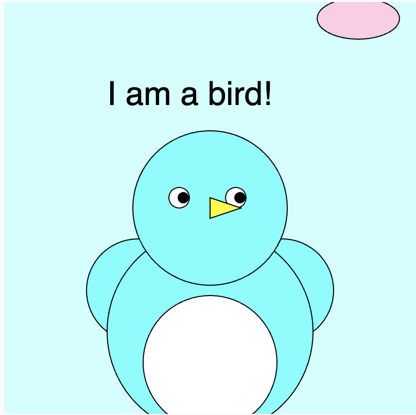 • A code that I am proud of is the one that makes the bird’s pupils move alongside the “worm”. I had to look up how to constrain the pupils within the eyes so they would not move all around the canvas: