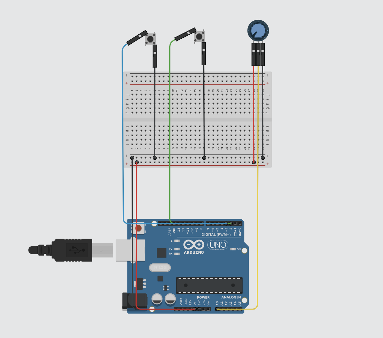 The project incorporates an Arduino with physical controls: