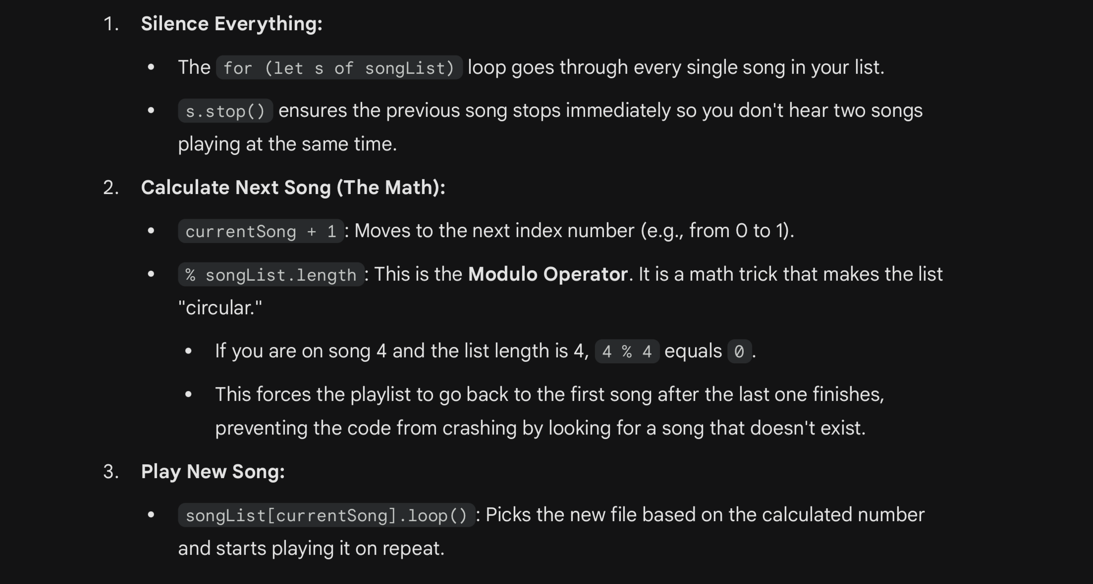 A small “health check” in the JavaScript restarts the microphone if it stops listening. This makes the whole loop smooth and fast: I talk → the browser listens → Arduino moves the car.