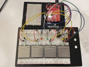We both thought about adding a piano-like element to our Arduino for this week’s project, so we then decided to move forward with that idea. It was really interesting to see how different inputs could change the sound and how that made the interaction feel more alive. Instead of just having one tone, being able to play different pitches made it feel more responsive and a bit more like an actual instrument.