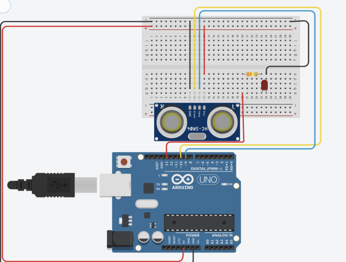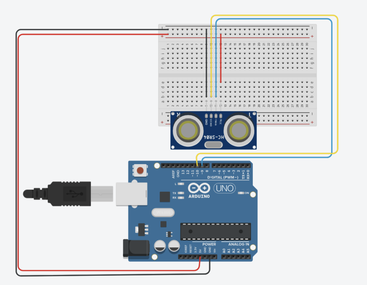 The arduino code is rather simple, if an object is detected the distance is written to the serial communication, and if an input is read on serial communication the light is blinked. The most interesting part about the arduino code is how the distance is measured using the pulse